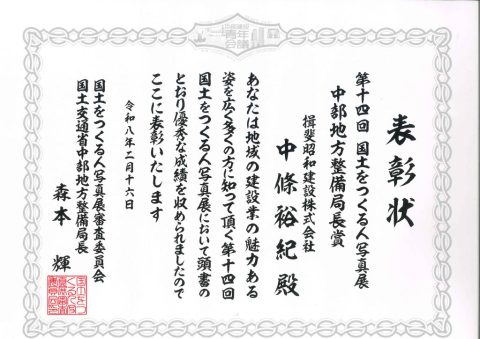 国土をつくる人写真展で中部地方整備局長賞を頂きました