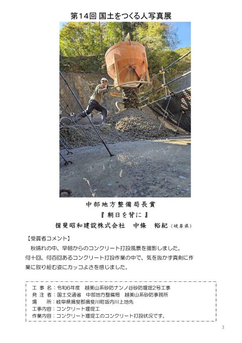 第14回国土をつくる人写真展で中條裕紀さんの作品が中部地方整備局長賞を