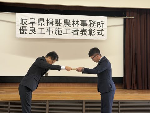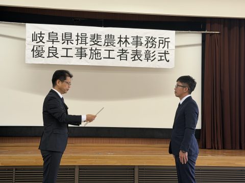 揖斐農林事務所にて令和7年度岐阜県農政部・林政部優良工事施工者表彰があり弊社が施工した